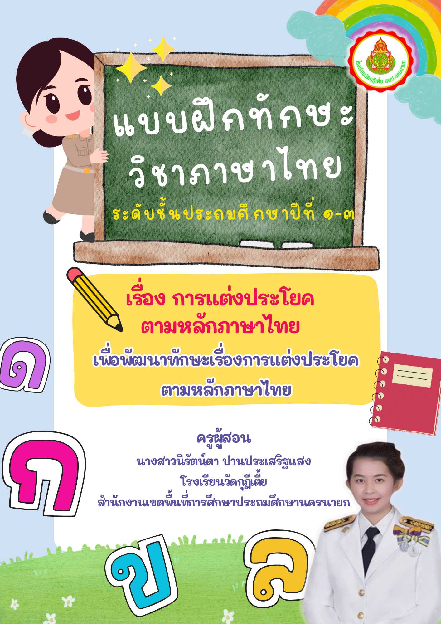 ชื่อผลงาน : นวัตกรรม แบบฝึกหัด วิชาภาษาไทย ระดับชั้น ป.1-3 เรื่อง การแต่งประโยคตามหลักภาษาไทย