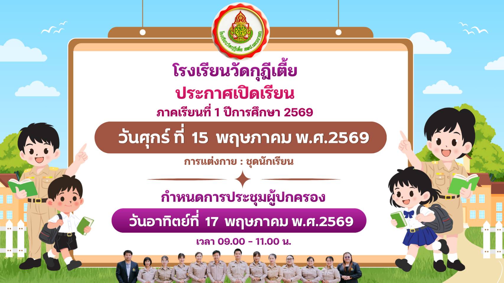 โรงเรียนวัดกุฎีเตี้ยยินดีต้อนรับนักเรียน เข้าสู่การจัดการเรียนการสอน ประจำปีการศึกษา 2568 ยินดีต้อนรับ เข้าสู่เว็บไซด์โรงเรียนวัดกุฎีเตี้ย สังกัดสำนักงานเขตพื้นที่การศึกษาประถมศึกษานครนายก